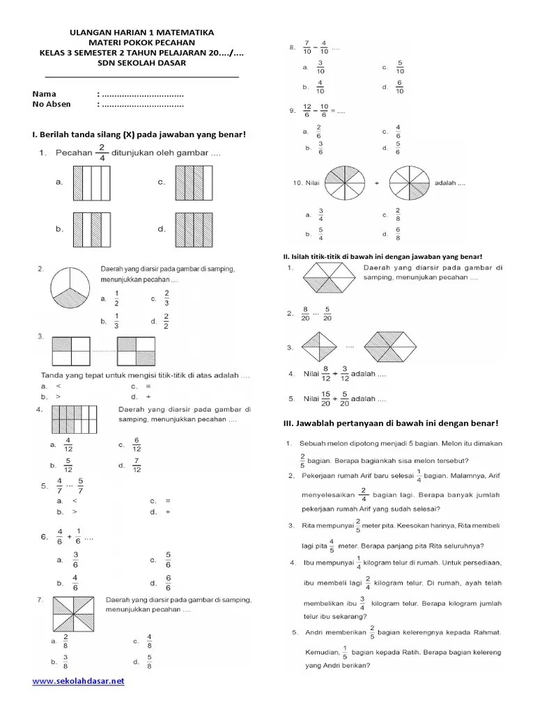 Cara Belajar Pecahan Kelas 3 Sd - Contoh Soal Matematika Kelas 3 Sd Semester 1 Dan 2 Lengkap 2021 : Belajar matematika makin asyik dan kreatif bersama apiq.