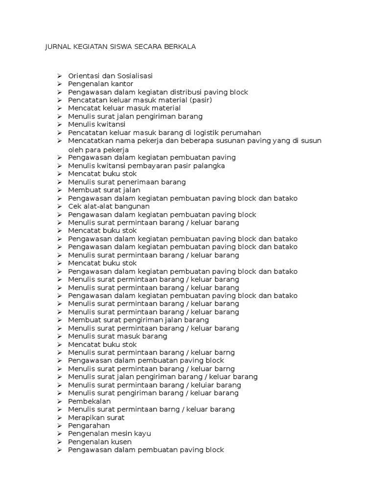 Jurnal Kegiatan Harian Siswa Pkl from imgv2-1-f.scribdassets.com We did not find results for: Maybe you would like to learn more about one of these? Check spelling or type a new query.