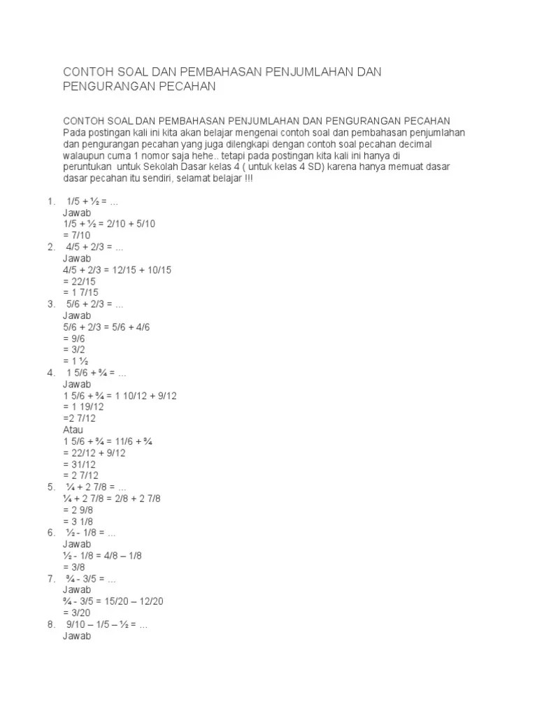 Soal di atas adalah soal pengurangan pecahan. Contoh soal matematika kelas 5 sd semester 2 2019. penjumlahan dan pengurangan pecahan biasa proses pengerjaan operasi penjumlahan dan pengurangan pecahan biasa hampir sama, oleh karena itu disini sengaja saya buat menjadi satu pokok bahasan. Soal penjumlahan dan pengurangan dilakukan dengan menyamakan penyebut. Jawaban yang tepat adalah 3 1 / 7. Karena keduanya setara, maka tinggal dikerjakan dari sebelah kiri, yakni; Untuk mengerjakan operasi hitung campuran pada pecahan, aturan yang digunakan sama seperti operasi hitung campuran pada bilangan bulat. 217 + 298 = 515 untuk lebih memahami tentang operasi hitung campuran silahkan kerjakan soal latihan berikut ini! Di dalam materi kali ini saya akan memberikan penjelasan mengenai pengertian operasi hitung campuran, aturan yang ada di dalamnya serta contoh soal lengkap dengan pembahasannya. Sehingga saya berinisiatif membuat media peraga kartu pecahan yang menarik dan mudah dipahami oleh mereka," Dengan cara yang sama pada operasi hitung pecahan seperti berikut : Download operasi hitung pecahan campuran ppt. 7.ibu menyiapkan sebuah kue hari raya kemudian ibu memotongnya menjadi beberapa bagian dan diberikan kepada doni.
